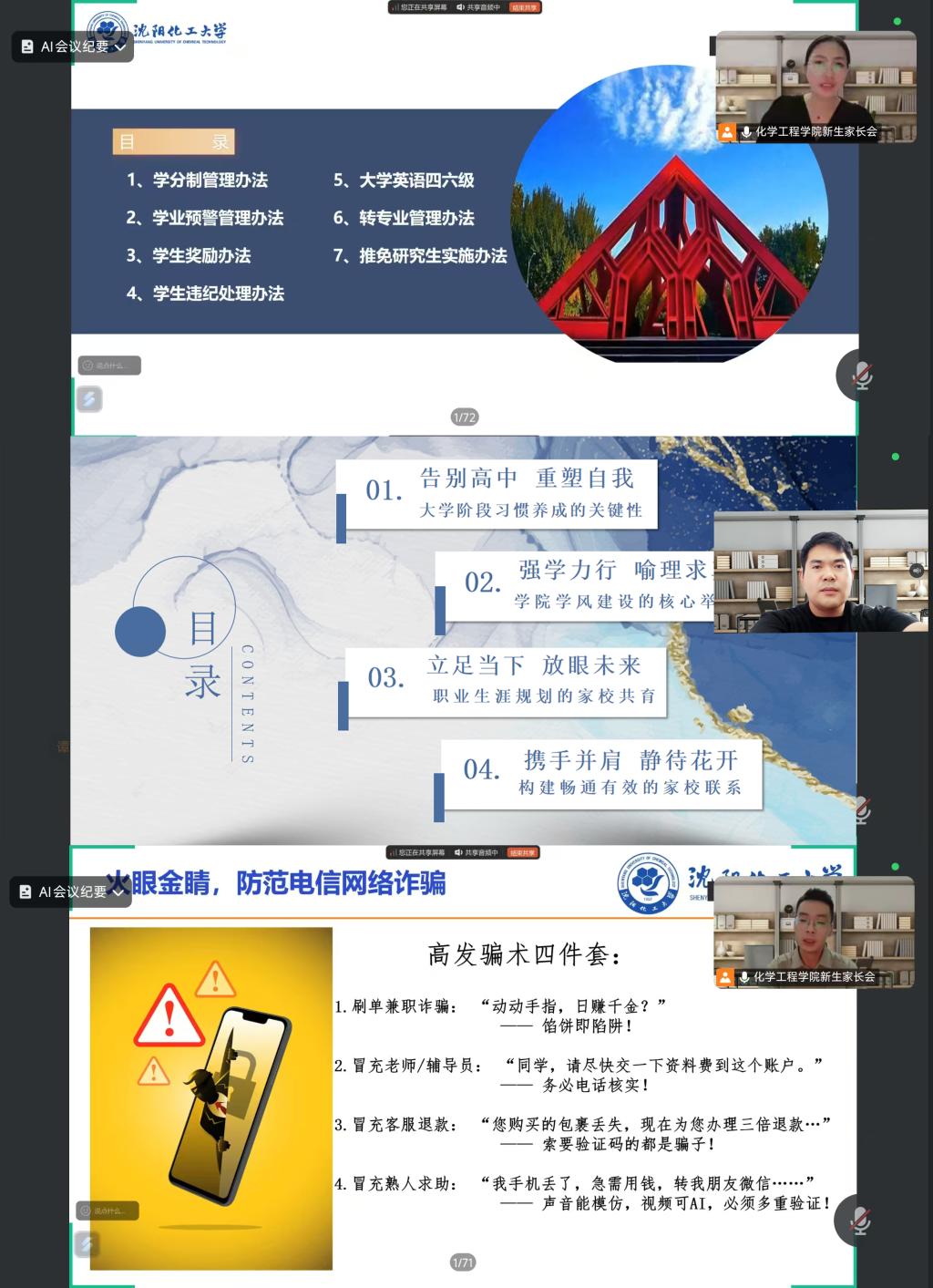 此次线上“前置”教育活动,不仅让2025级新生提前明晰入校报到要求与大学学业生活重点,深化对学校及学院的认知与认同,更搭建起辅导员与新生、家长间信任沟通的桥梁,为后续新生入学及培养工作奠定良好基础。下一步,化学工程学院将持续完善家校协同育人机制,为2025级新生的大学成长之路保驾护航,助力新生在学院实现全面发展。
