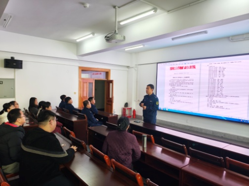 演练筹备阶段,学院与保卫处联合制定了针对性极强的演练方案,结合致本楼A座的建筑布局、办公教学及科研区域人员分布特点,明确疏散路线、岗位职责与应急处置流程。13时30分,演练正式启动,致本楼A座楼内烟雾模拟装置同步启动,营造真实火情场景,随后急促的消防警报声响起。接到火警通知后,通讯联络组、灭火行动组、疏散引导组、安全救护防护组通力协作,仅用时1分40秒,全体参与演练人员均安全抵达三创广场安全集结点,疏散引导组随即清点人数并向演练指挥部报告,实现“零遗漏、零意外”。集结完毕后,保卫处专家现场开展消防实操教学,结合办公、教学及科研场景常见隐患,详解办公和实验设备使用规范、防火要点及火灾报警关键信息,针对演练中出现的细节问题提出优化建议。
