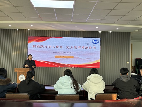 关婷以“积极践行初心使命 发挥先锋模范作用”为题授课。她以“初心使命”为核心主线,从理论溯源到实践路径展开系统讲解。她指出,学生党员要以“功成不必在我、功成必定有我”的境界,在日常学习生活中带头遵纪守法、带头服务同学、带头攻坚克难,真正成为师生中的先进标杆。