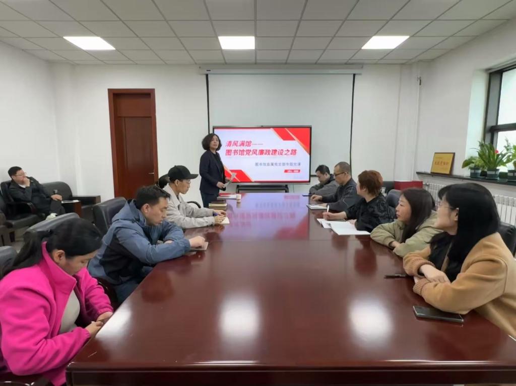 为进一步推进全面从严治党,增强职工廉洁自律意识,筑牢思想防线,确保党风廉政建设走深走实,3月28日,在图书馆会议室,图书馆直属党支部书记赵霜霜以《清风满馆——图书馆党风廉政建设之路》为题,为支部全体党员讲廉政教育专题党课。