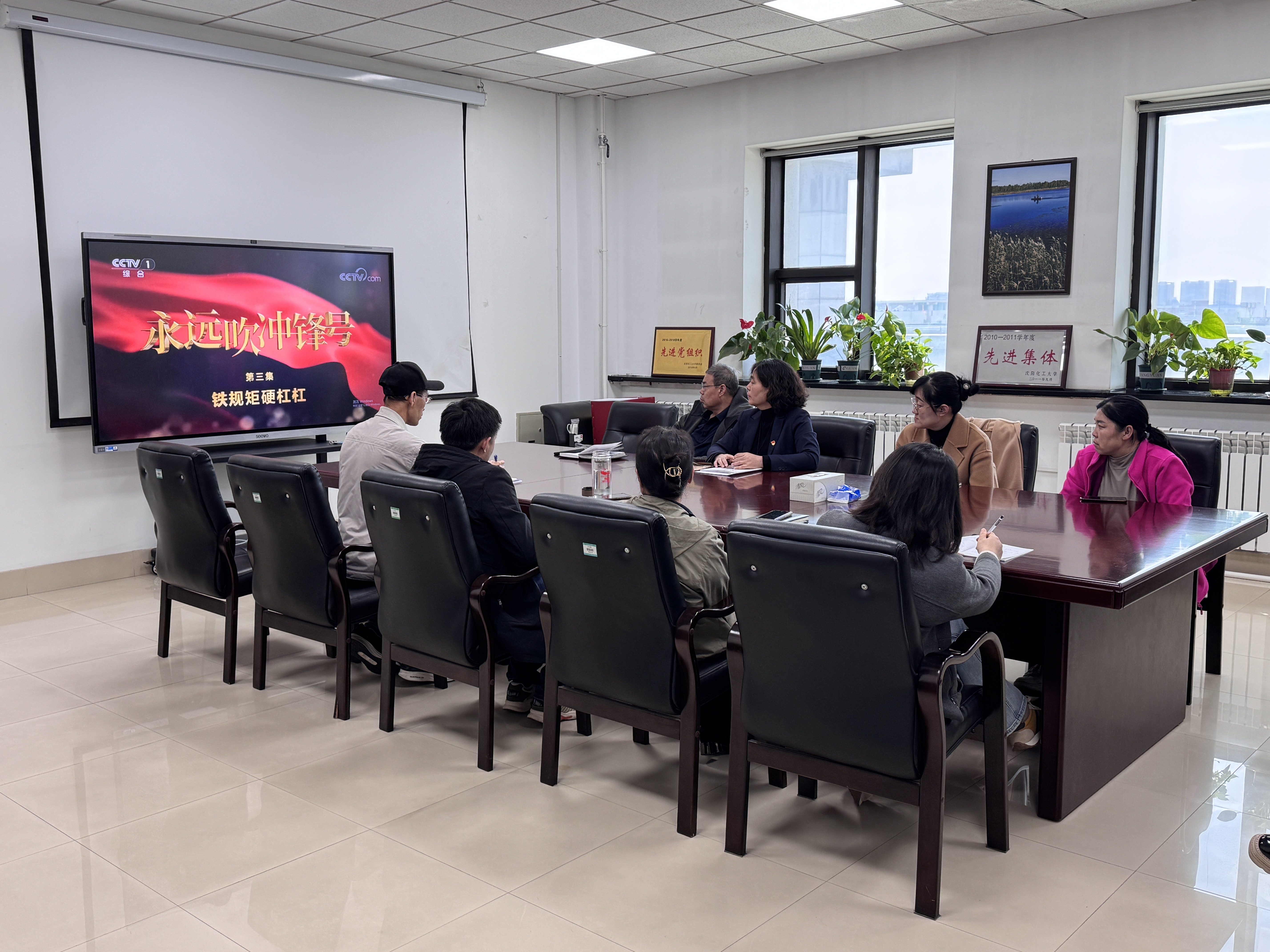 为深入学习贯彻习近平总书记关于党风廉政建设的重要论述,扎实开展深入贯彻中央八项规定精神学习教育,4月16日上午,图书馆直属党支部在504会议室组织全体馆员集中观看警示教育片《永远吹冲锋号》第三集《铁规矩硬杠杠》。