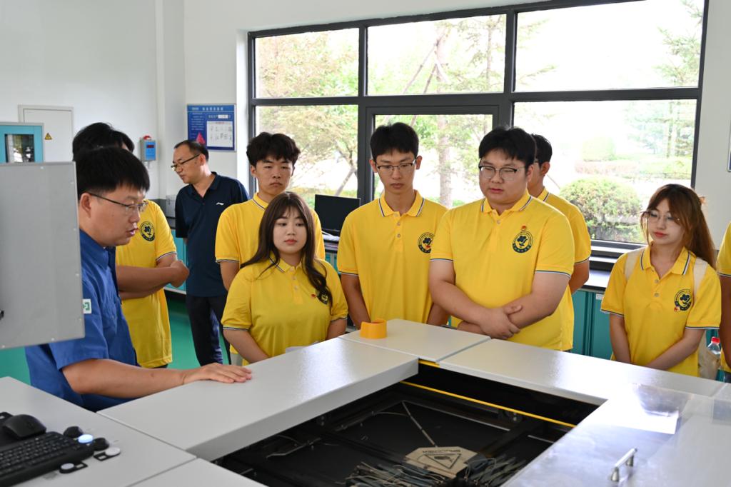 随后,实践团成员走进生产车间,面向企业工人发放调查问卷,就企业基层对于实际生产中所遇到的技术问题和产生的想法进行了广泛调研。实践团在研发总监孟令明的引导下参观了企业研发实验室,重点学习了目前企业生产的主要设备和工艺流程,对企业产品样品也进行了了解。