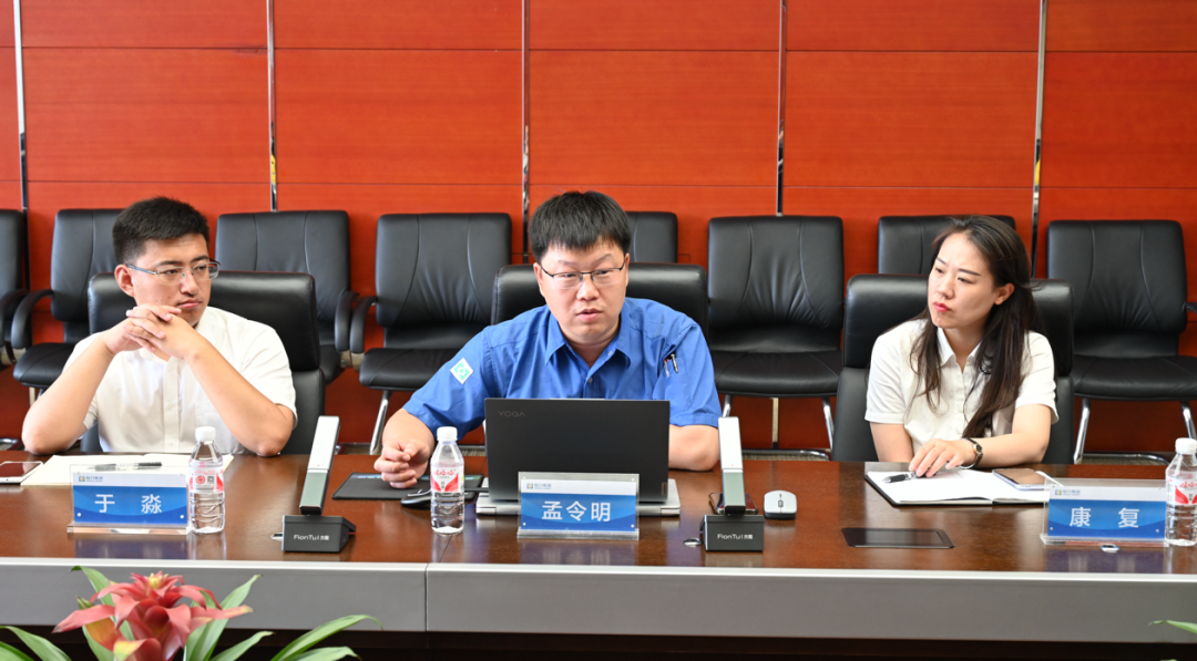 实践团成员首先与企业分管技术研发、人事招聘、青年工作的负责同志开展座谈交流。康辉新材料科技有限公司研发总监孟令明向实践团详细介绍了公司的产业结构、产品研发进展及市场应用情况,生动形象地讲述了公司从“一滴油到一匹布”的高质量发展之路。