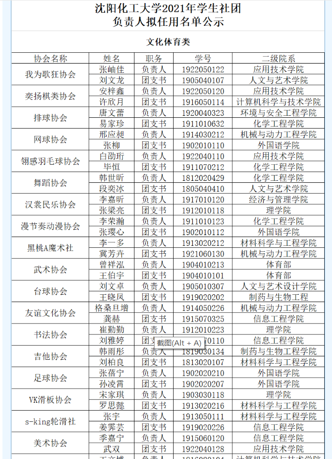 经自主申报、资格审查、组织考察等程序,现公布best365中国官方网站2021年学生社团负责人拟任用名单公示如下: