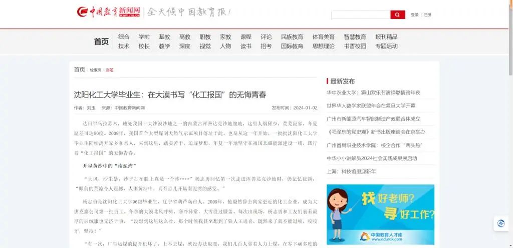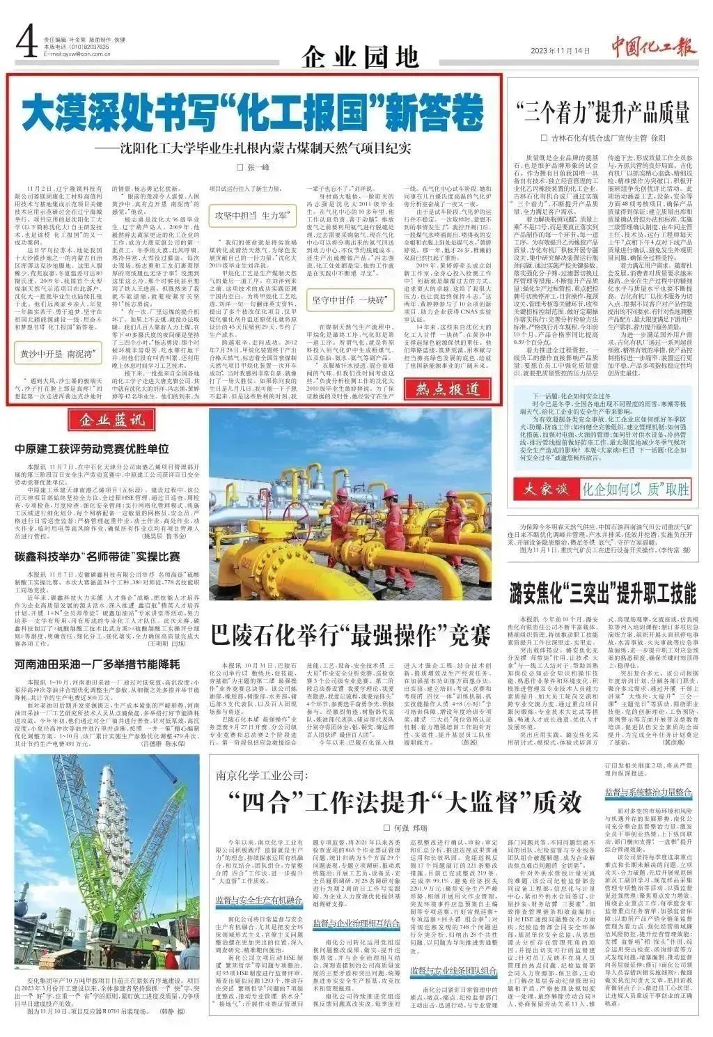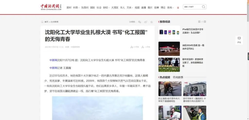best365始终坚守“化工报国”初心,把立德树人作为根本任务,把服务社会作为根本使命。七秩春秋,育10万栋梁。科技精英、企业领军、政府骨干、创业先锋,数代化大学子传承红色基因,担负化工行业发展重任,矢志化工报国。今年,学校党委进一步凝炼“化工报国”的精神内涵,策划采访各行各业的化大毕业生,充分展现“化大人”用奋斗坚守、勤劳智慧,砥砺化工强国之志,实践化工报国之行。9月下旬,学校组织采访组深入内蒙古达日罕乌拉苏木实地走访,对扎根于内蒙古大唐国际克什克腾旗煤制天然气项目的42名毕业生进行专题交流访谈,整理形成纪实报道。近日,《中国教育报》、人民论坛网、中国新闻网、《中国化工报》、东北新闻网、辽宁省教育厅官网、辽宁高校思政网官微等十几家主流媒体相继报道best365毕业生在大漠书写“化工报国”的无悔青春。