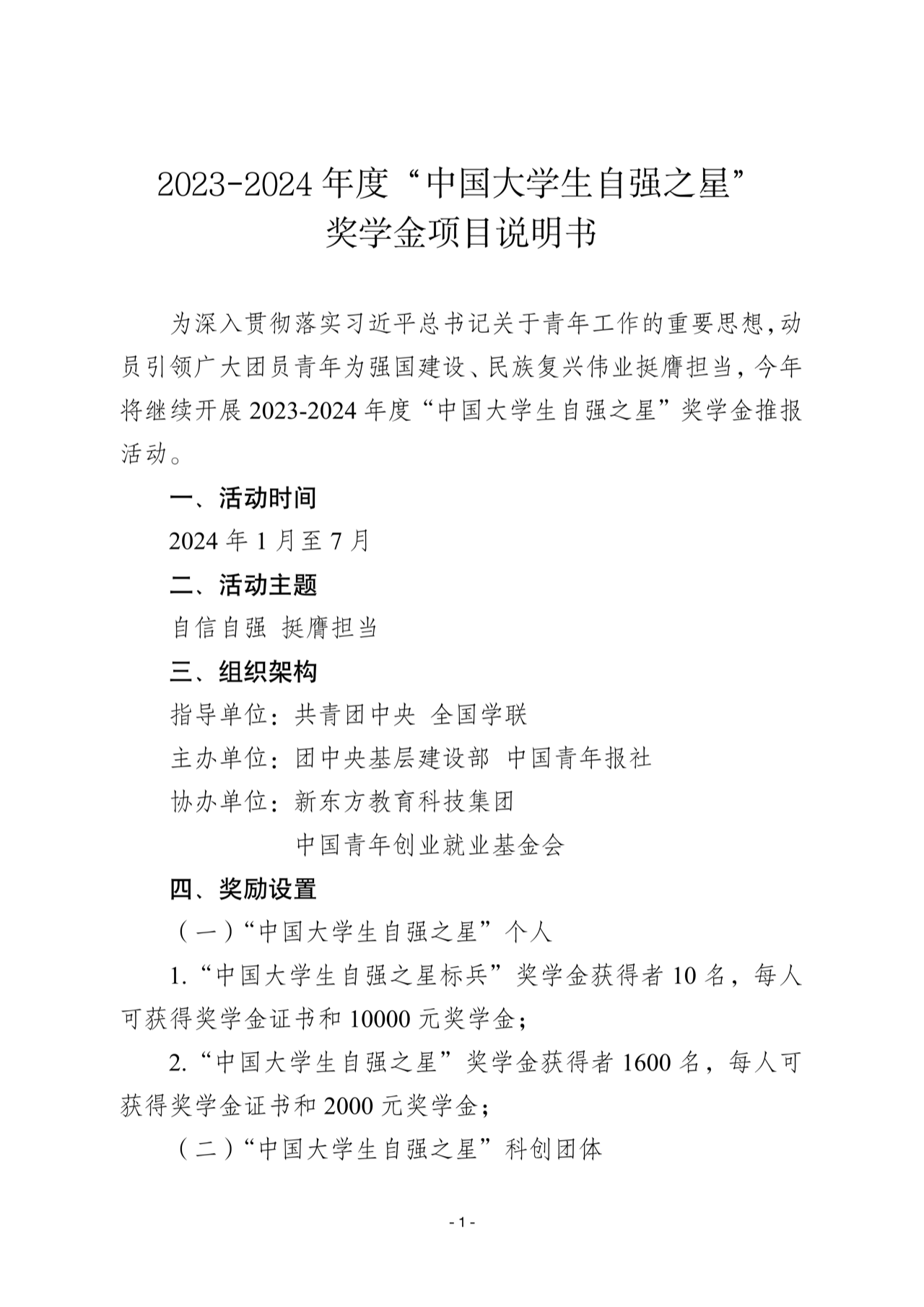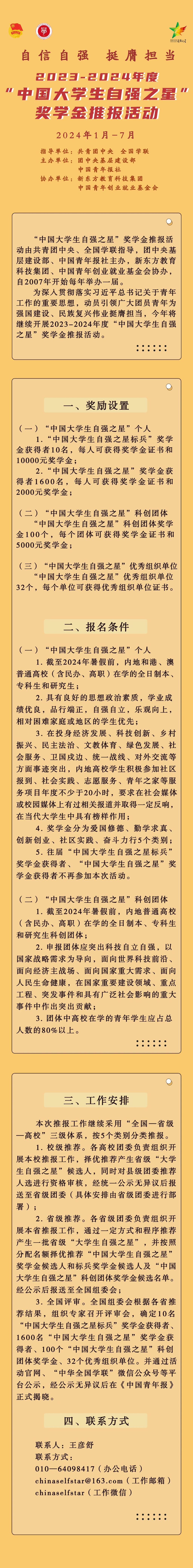 2023-2024年度“中国大学生自强之星”奖学金推报活动来啦!