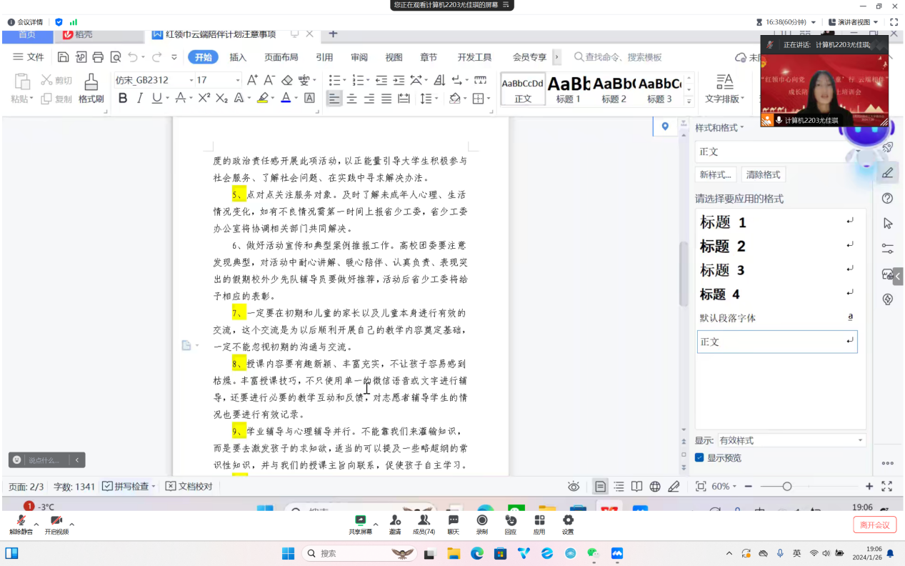 为深入贯彻党的教育方针,加强少先队员思想道德建设,传承和弘扬志愿精神和服务理念,2024年1月26日,校团委召开了“红领巾心向党 与你‘童’行 云端相伴”成长陪伴计划线上培训会,会议由学生会权益部大二负责人尤佳琪主持。