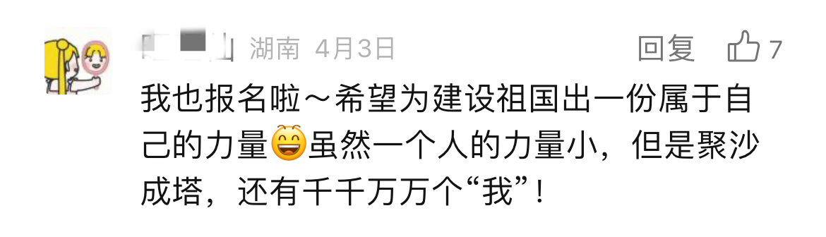 打开留言区,这群年轻人澎湃滚烫的“热情怀”溢出屏幕。“读书16年,我想是时候去做一件这样的事了。”“在党和国家的帮助下我才实现了大学梦,我也想以实际行动回报党和国家”“我的家乡就在西部,想把大山外的世界带给大山里的每一朵小花儿,给祖国的西部种满星星”……“家国所系,我之所行”。我们不难发现,这些字里行间流露出的强烈爱国情感和社会责任感,正是这群年轻人毅然决然报名西部计划的强大“源动力”。