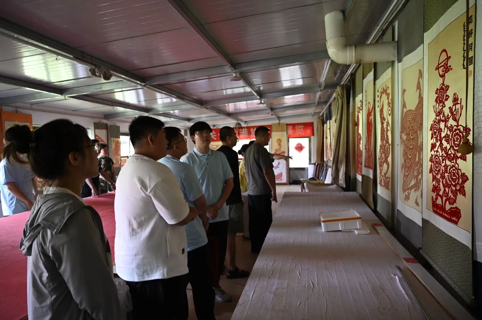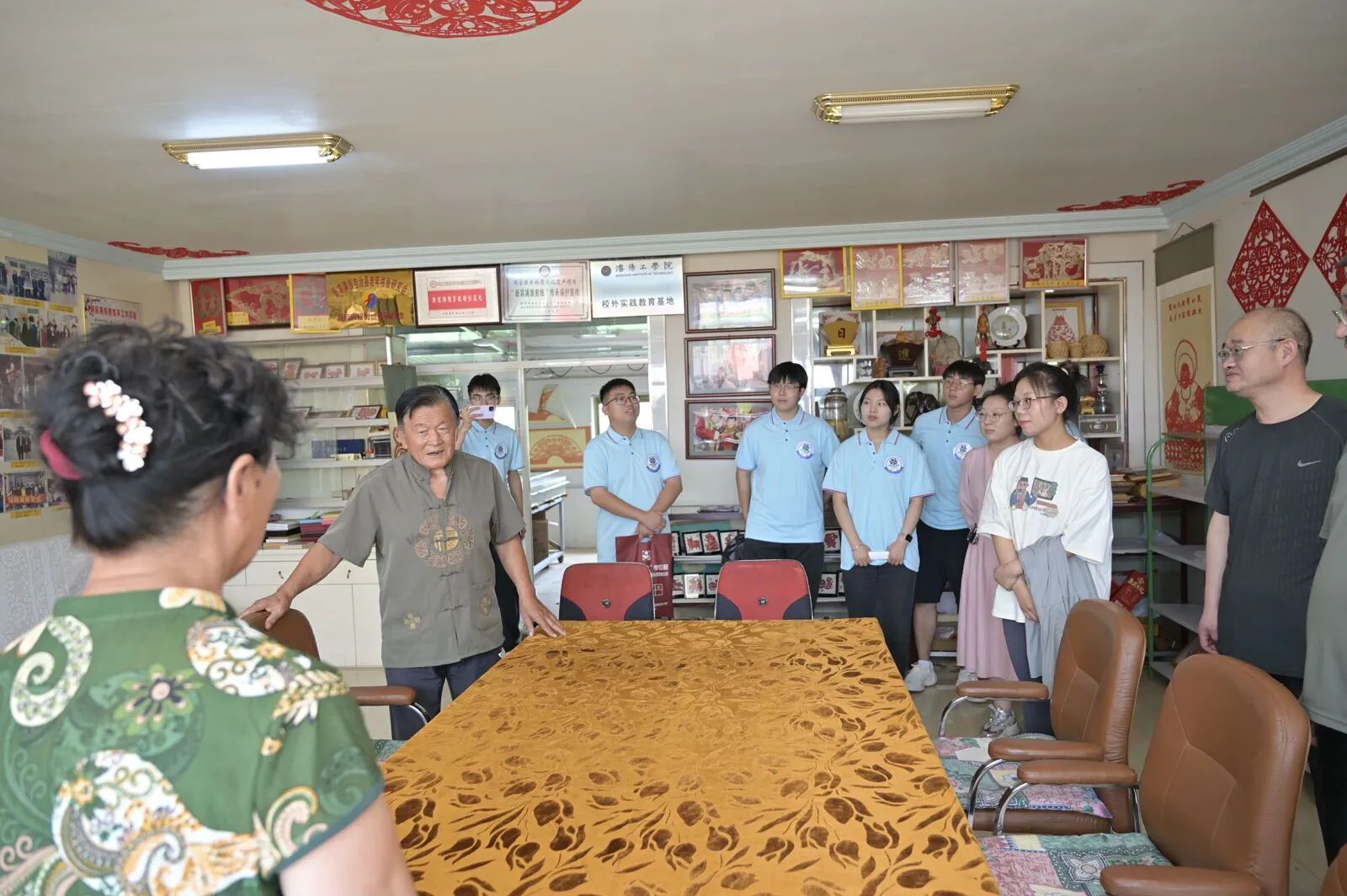 除了剪纸旗袍,本溪市桓仁满族自治县的传统版画,也是满族非遗文化浓墨重彩的一环,历史悠久,实践团成员在工作人员的讲解下,在版画展览馆真正的了解到了关于满族版画的知识,并且动手尝试,更加深刻的领会了“刀木吐彩歌盛世,翰墨飘香谱华章”的含义,对满族文化也有了更深刻的见解。