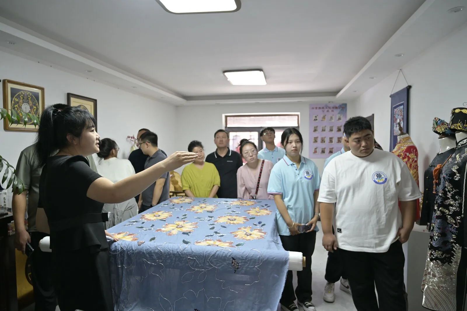 实践团来到永陵镇旗袍博物馆,每一件作品都展现了满族旗袍艺术的独特魅力。在博物馆的讲解员的带领下,实践团成员们深入了解旗袍的发展历程和背后的故事,惊叹于旗袍制作工艺的精湛,赞叹于旗袍设计师的巧妙创意。