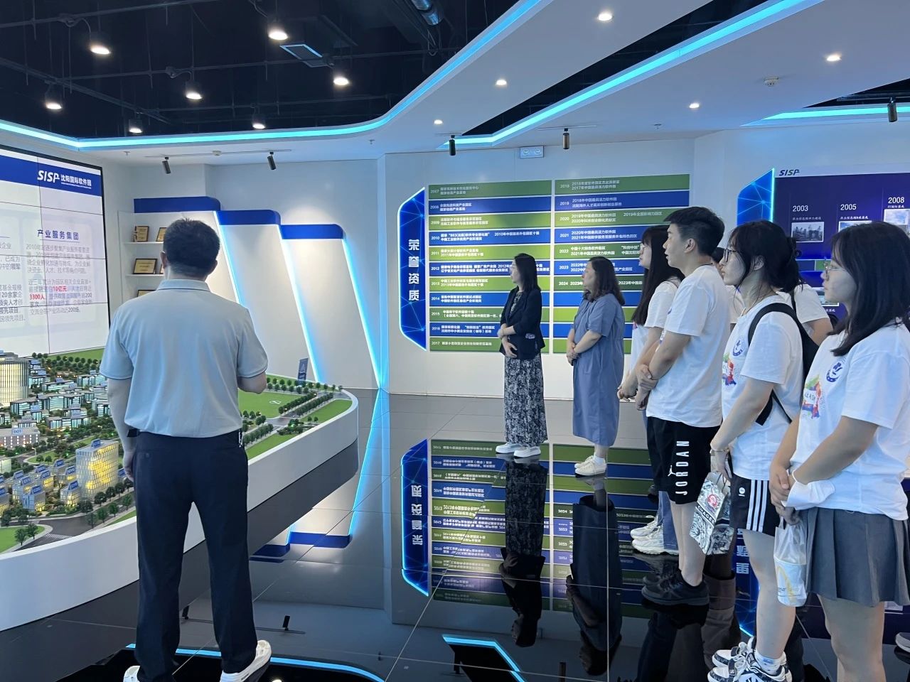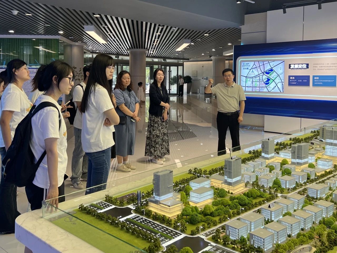 8月4日上午,实践团成员来到了浑南区(沈阳高新区)规划展示馆。规划馆作为展示浑南区乃至沈阳市未来发展规划的重要平台,以其独特的视角和丰富的展示内容,让队员们仿佛置身于一个充满无限可能的未来世界。在这里,新质生产力不再是抽象的概念,而是化作了具体而生动的图景,展现在队员们眼前。