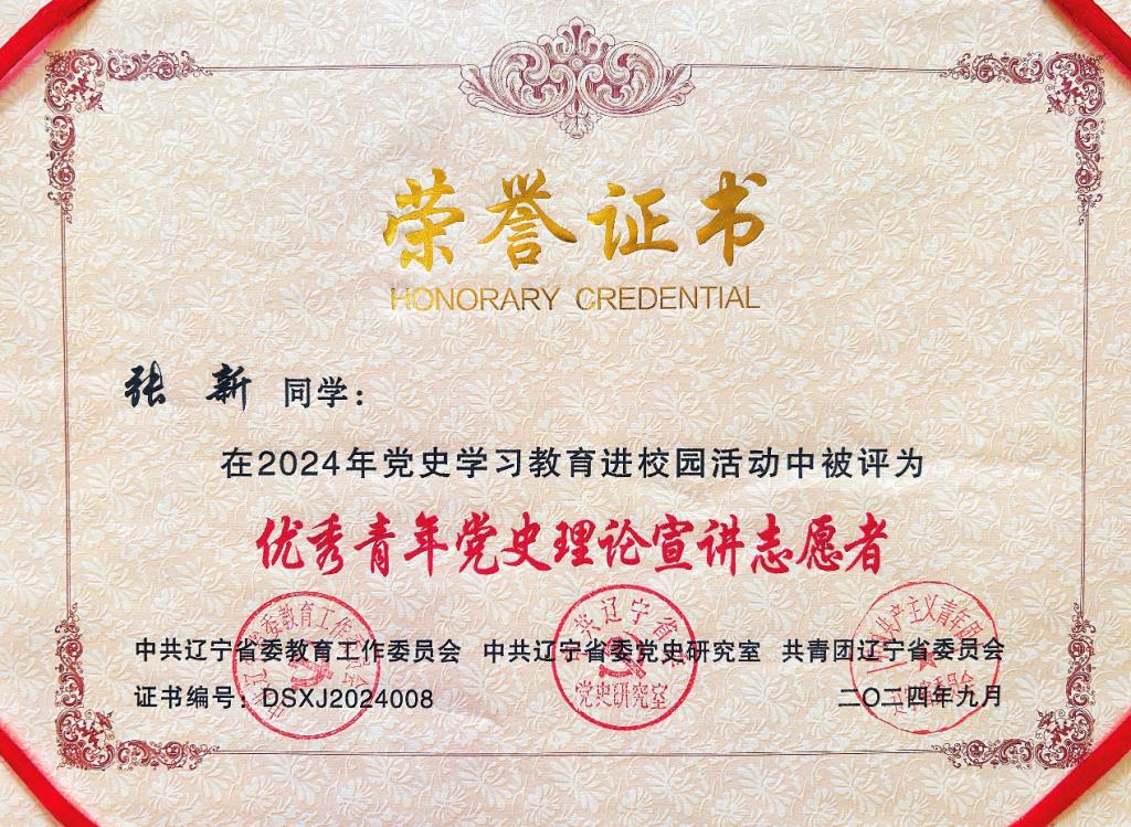 best365研究生会执行主席、“化工报国”大学生理论宣讲团成员、化工研究生202203班班长张新作为主讲人参与活动,并受聘为辽宁青年党史理论宣讲团成员,被授予辽宁省第一批优秀青年党史理论宣讲员荣誉证书。