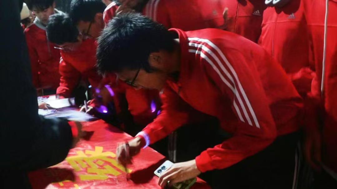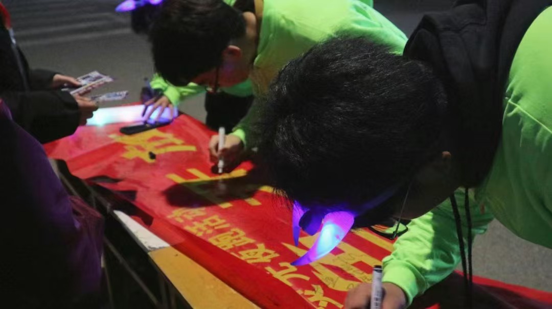 同学们怀着兴奋和喜悦的心情,纷纷在横幅上签名,留下自己独特的印记,每一笔每一划都饱含着他们对此次活动的热情与纪念意义。