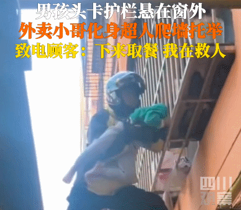 2024年2月16日,辽宁大连,外卖小哥李海涛 送外卖时 看到一个约5岁的小男孩 头卡在2楼外防护栏处, 身体悬空不断挣扎 ,于是他 化身“飞天侠”,托举男孩10多分钟,最后成功将小男孩救下。
