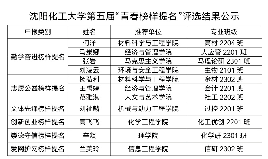 公示期三天(2025年4月23日—2025年4月25日)广大师生员工如对公示内容有异议,请于4月25日前向团委反映。在公示期内未收到任何意见反馈,则视为无异议,校团委将按照程序确定。