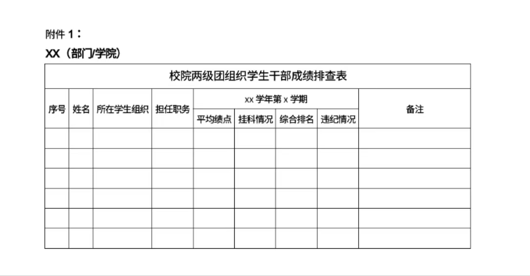 附件1:校院两级团组织学生干部成绩排查表