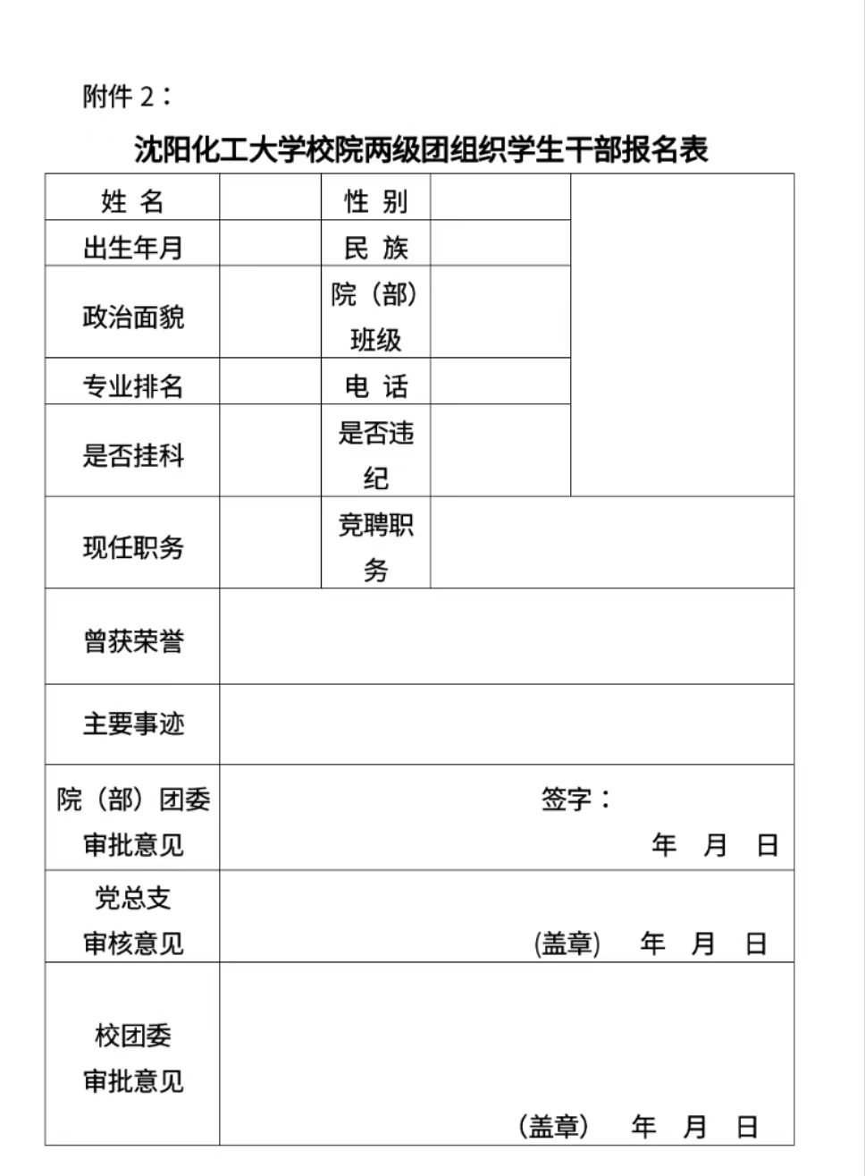 附件2:best365中国官方网站校院两级团组织学生干部报名表