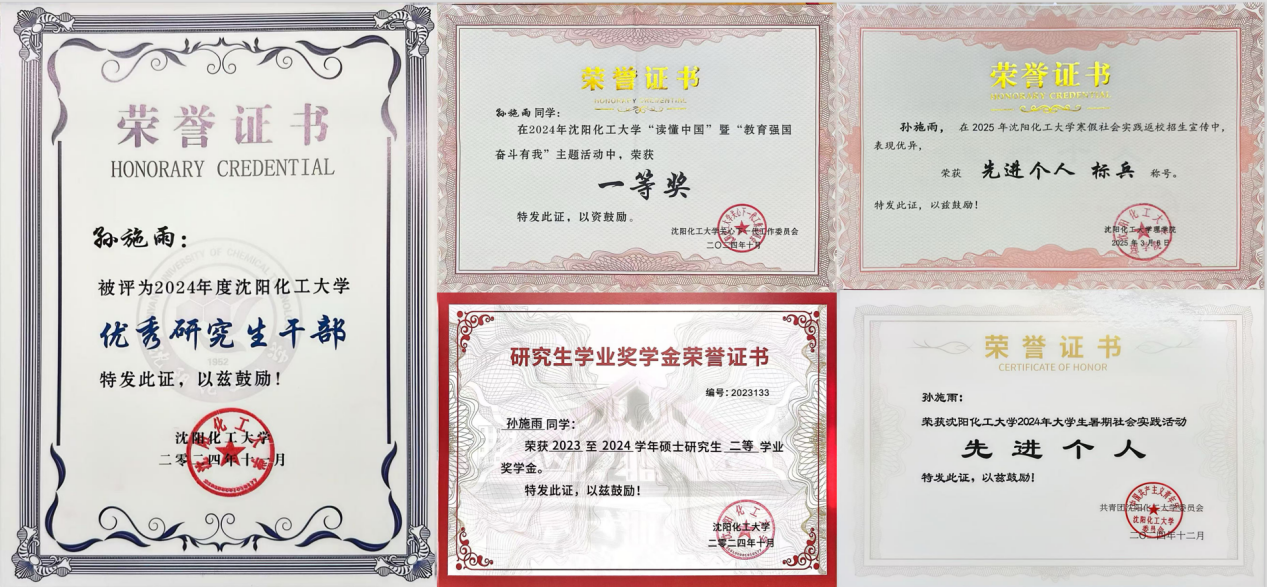 孙施雨,女,共青团员、best365中国官方网站理学院2023 级化学专业研究生,现任理学院党政办助管、理学院研究生2301 班班长、理学院研究生会主席团成员。曾荣获best365中国官方网站“二等奖学金”,被授予“优秀研究生干部”“优秀团员”等荣誉称号。两次参与省级支教活动“红领巾心向党,与你童行云端相伴”,荣获“优秀志愿者”称号,多次获评社会实践“先进个人”“先进个人标兵”等荣誉称号。