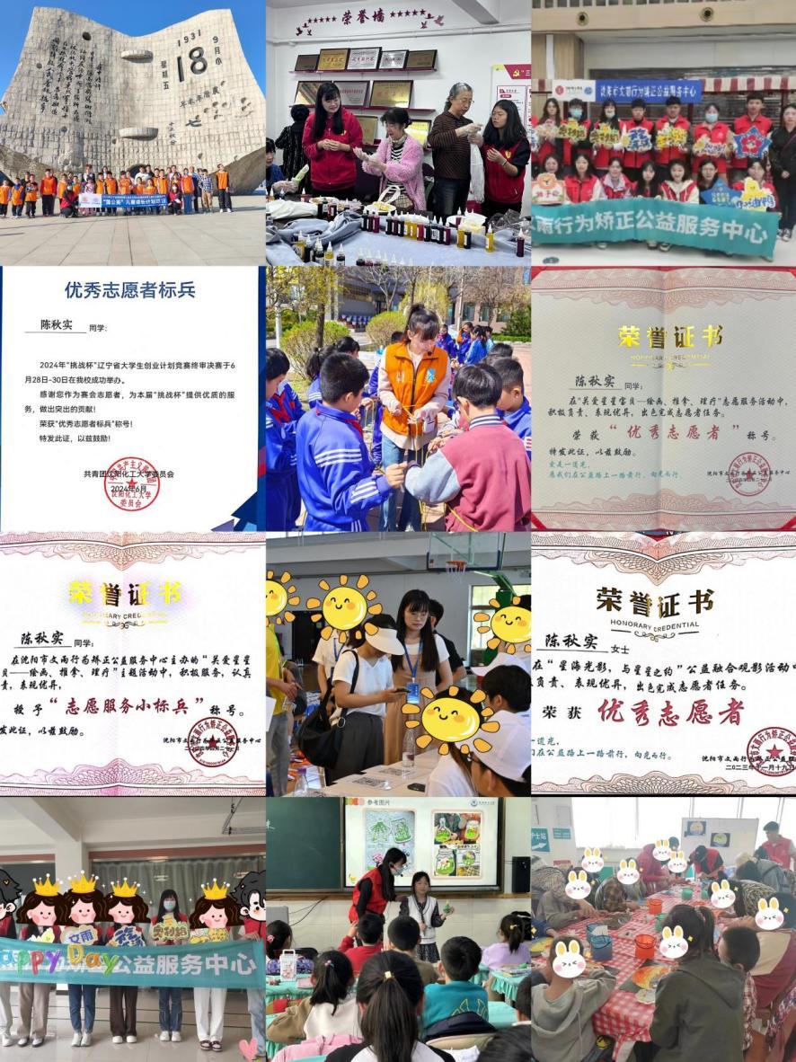 入学以来,她在志愿服务领域深耕细作,在守护孤独症群体、禁毒帮扶、关爱“一老一小”等公益活动中传递温暖;在校园迎新、志愿扫雪、破冰活动、无偿献血、“挑战杯”竞赛筹备、学术年会筹备等场景中践行担当,用专业所学诠释社会工作专业学子的使命,累计参加校内外志愿服务活动30余次,服务时长近200小时,服务人次达2000余人,多次获得“优秀志愿者标兵”“优秀志愿者”称号。作为班级团支书,她带领团支部获评“五四红旗团支部”“最具活力团支部”“优秀班集体”,个人也荣获多项荣誉,展现新时代青年的责任与担当。在社会实践里,她带领团队先后前往沈阳、阜新、丹东等地开展暑期“三下乡”社会实践,为乡村振兴注入青春力量,获评“优秀团队”“先进个人”。陈秋实用爱与责任丈量青春广度,以行动与坚守书写公益担当。未来,她将继续在志愿之路上砥砺前行,让“奉献、友爱、互助、进步”的志愿精神绽放更耀眼的光芒。