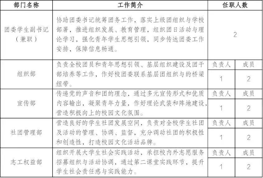 2.申报团委各部门负责人类别者,原则上为2023级全日制在籍本科生;
